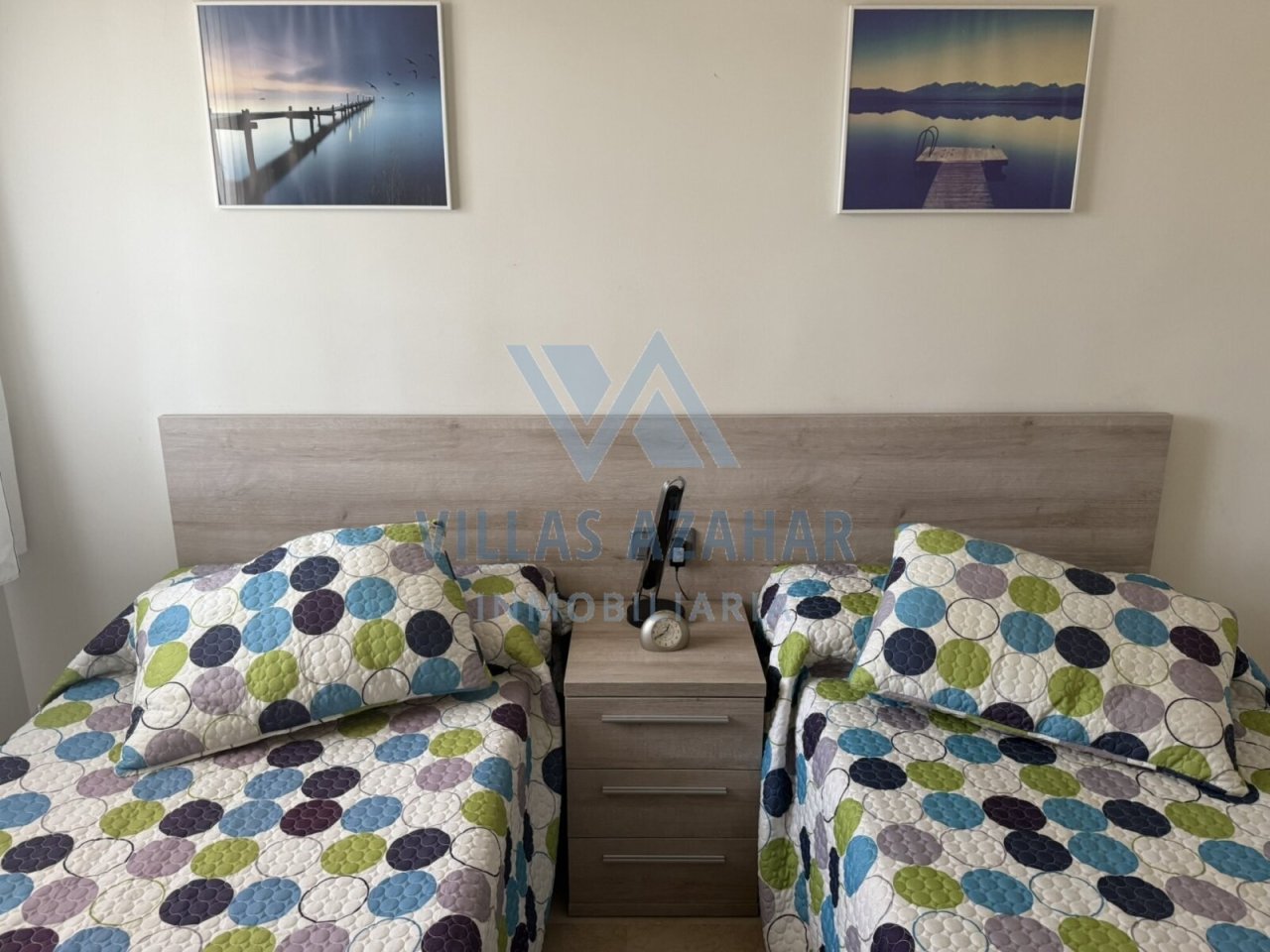 Magnificent three-bedroom apartment in the Las Mimosas residential complex, Torrenostra. The property is in excellent condition, ready to move into and enjoy all year round. It features a spacious living-dining room with terrace, three bedrooms, two full bathrooms, and an independent fully equipped kitchen. Marble floors, ceiling fans in all rooms, and awnings. It includes a large storage room, solarium area, and a parking space within the complex. The apartment is very bright and perfectly oriented to be enjoyed throughout the year. It has ducted hot/cold air conditioning and is sold furnished. Located very close to the beach. Private security all year round. Several swimming pools within the complex, one of them for children. The community offers a social club with various services: gardens, a lounge with winter fireplace, a restaurant area, and sports facilities (4 paddle courts, 2 tennis courts...), as well as a spacious gym. Perfect to live in all year round. Very close to the beach and all necessary amenities. A real luxury and a great investment, as the town of Torrenostra has excellent growth potential.