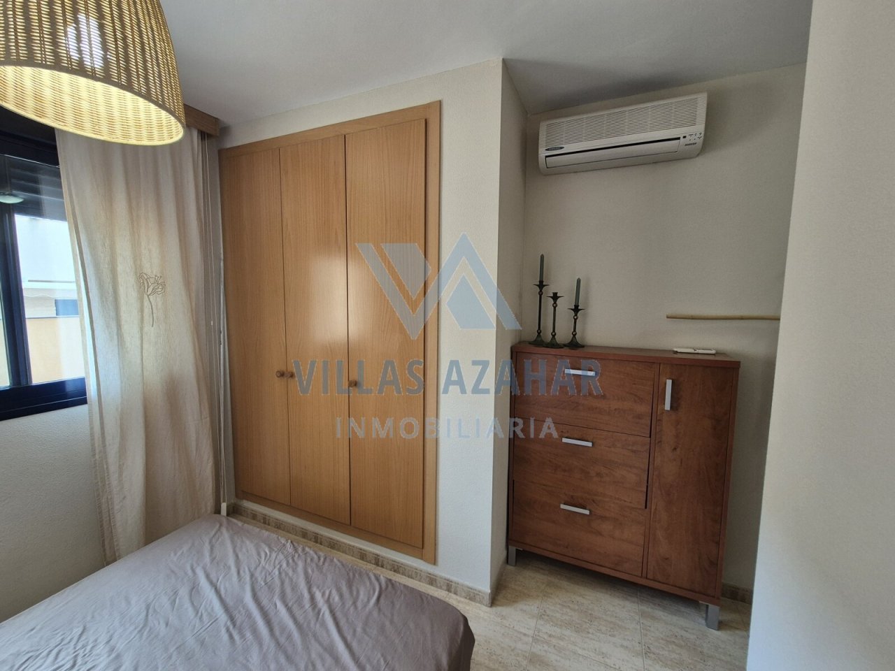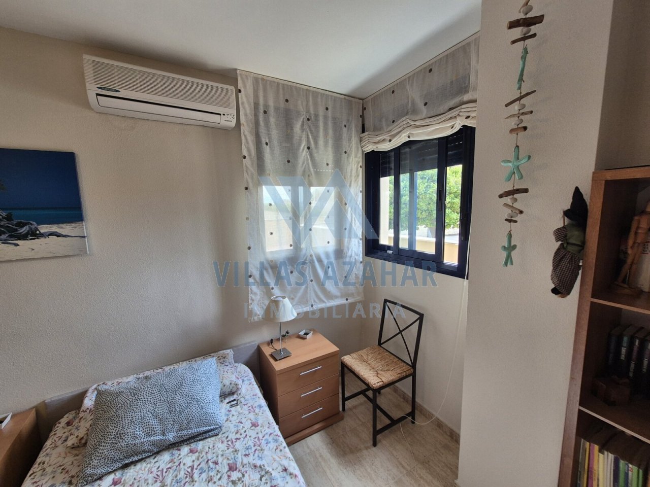 The apartment is equipped with three air-conditioning units, double-glazed windows with shutters, and is sold partly furnished.